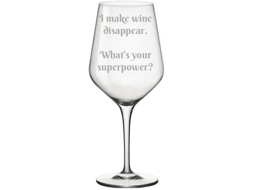 Čaša za vino "I make wine disappear. What's your superpower?"