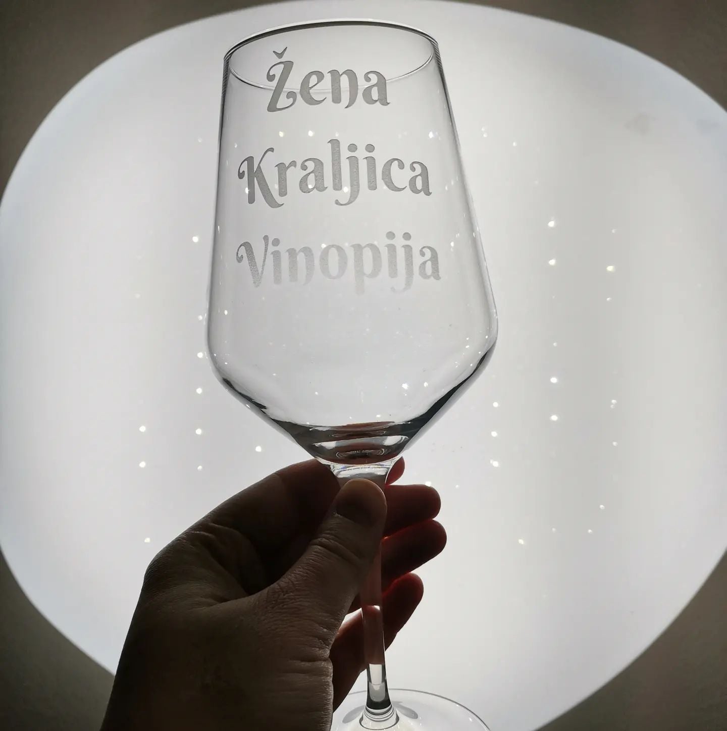 Jedna od osnovnih karakteristika dobre čaše za vino je da mora omogućiti pravilno prepoznavanje svih aspekta vina, stoga mora biti bezbojna, providna i bez suviše ukrasa. Oblik čaše može poboljšati aromu vina, što zauzvrat utiče na ukus Vašeg vina. Čaše su zakrivljene ka unutra na vrhu, što pomaže da se arome koncentrišu u ovoj oblasti. Još kad postoji i neka posebna poruka na njima – sve je kompletno!