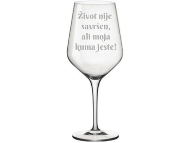 Čaša za vino "Život nije savršen, ali moja kuma jeste"